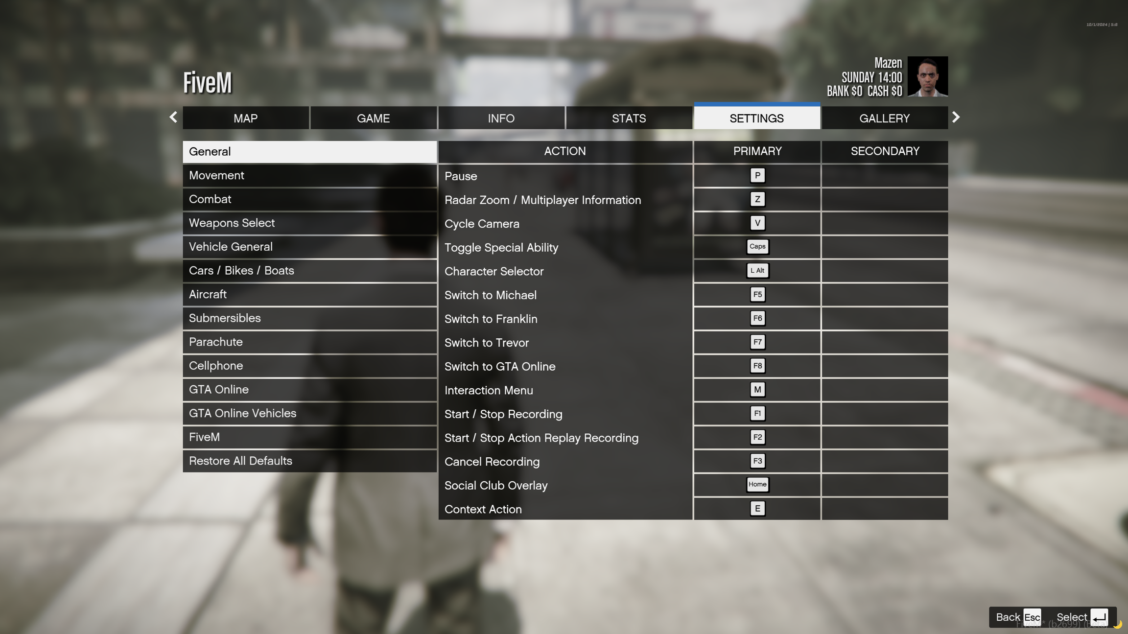 fivem.cfgfile.Restart FiveM to reset the keybinds to the default values set in the configuration.